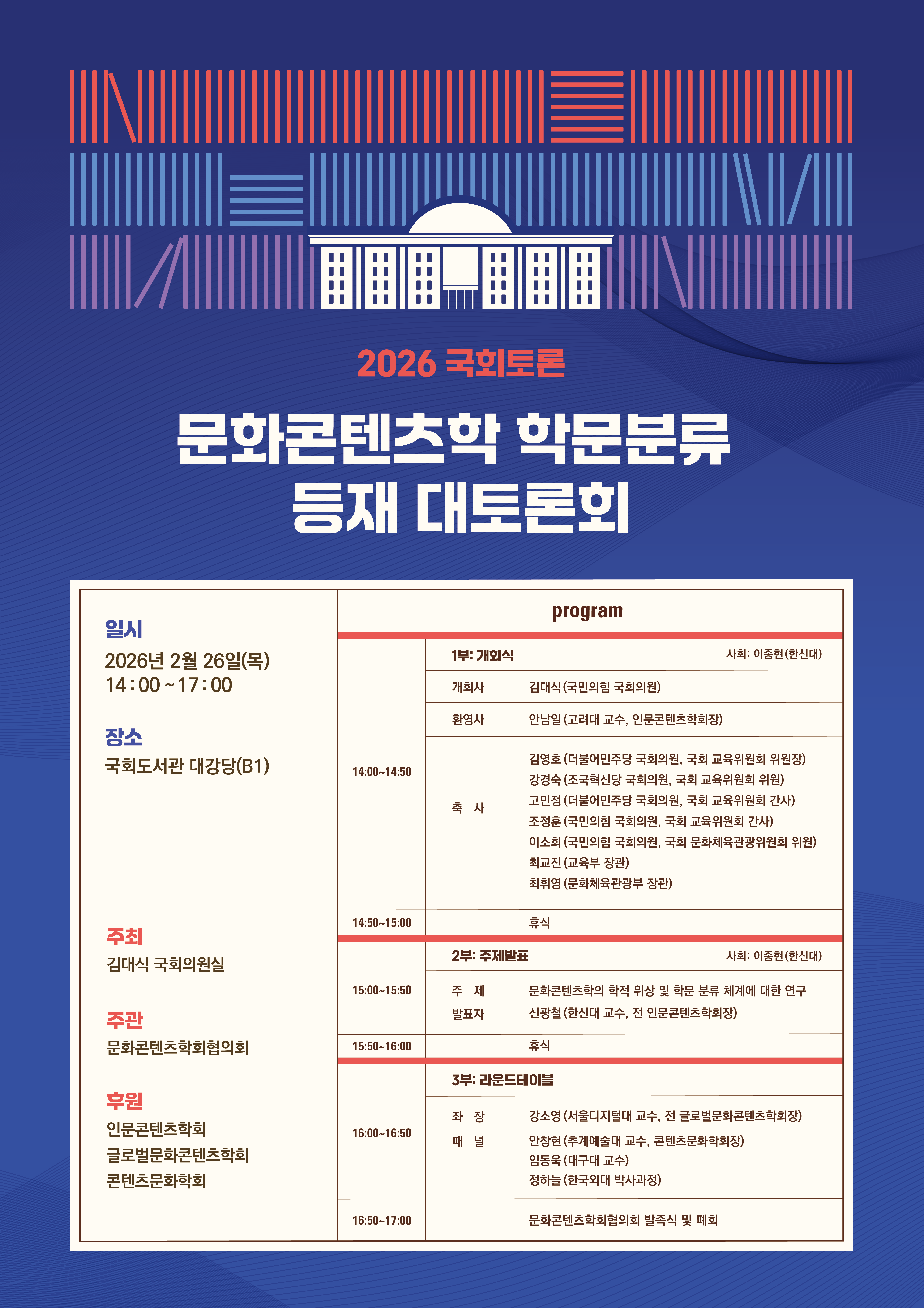 문화콘텐츠학 학문분류체계 신설 및 등재 방안에 관해 국회 대토론회를