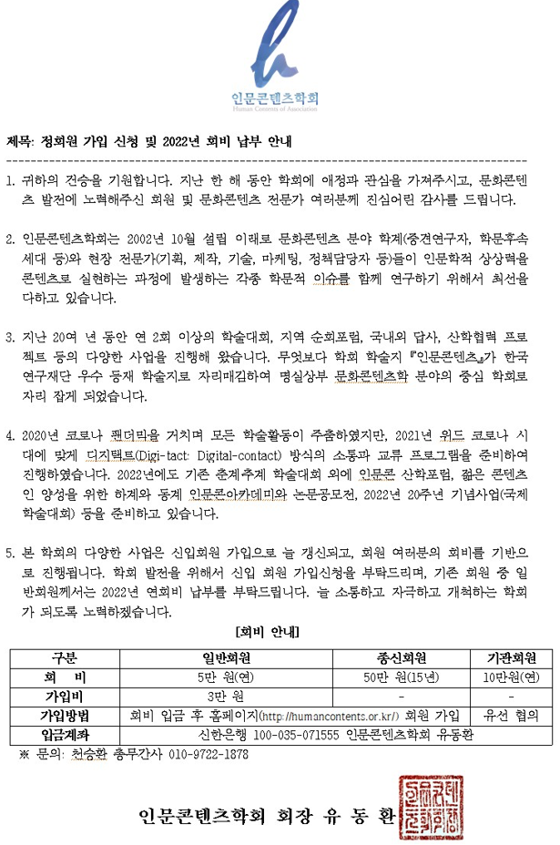 정회원 가입 신청 및 2022년 회비 납부 안내