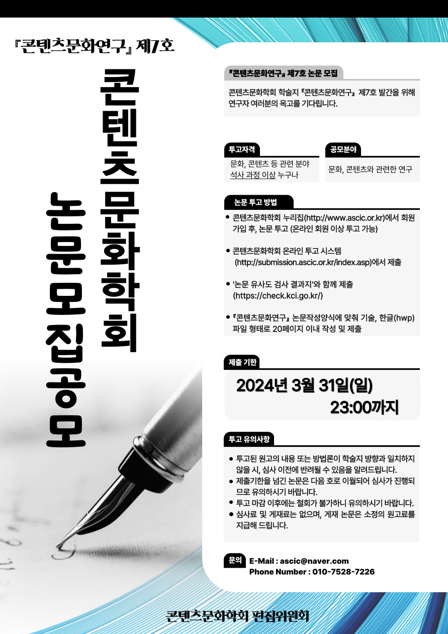 『콘텐츠문화연구』제7호 논문 모집 연장공고(~3/31)